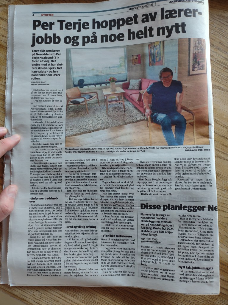 Jeg er gestaltterapeut på Nesodden og ved Akersgata Gestalt i Oslo. Du kan lese mer om praksisen min her.